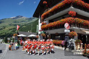 世界各地觀光客深入阿爾卑斯山區,各國藝術團也彼此交流。方相舞蹈團13日持續在花園美景的瑞士,詮釋原住民舞蹈(圖),舞團與國家的形象獲觀光客肯定。